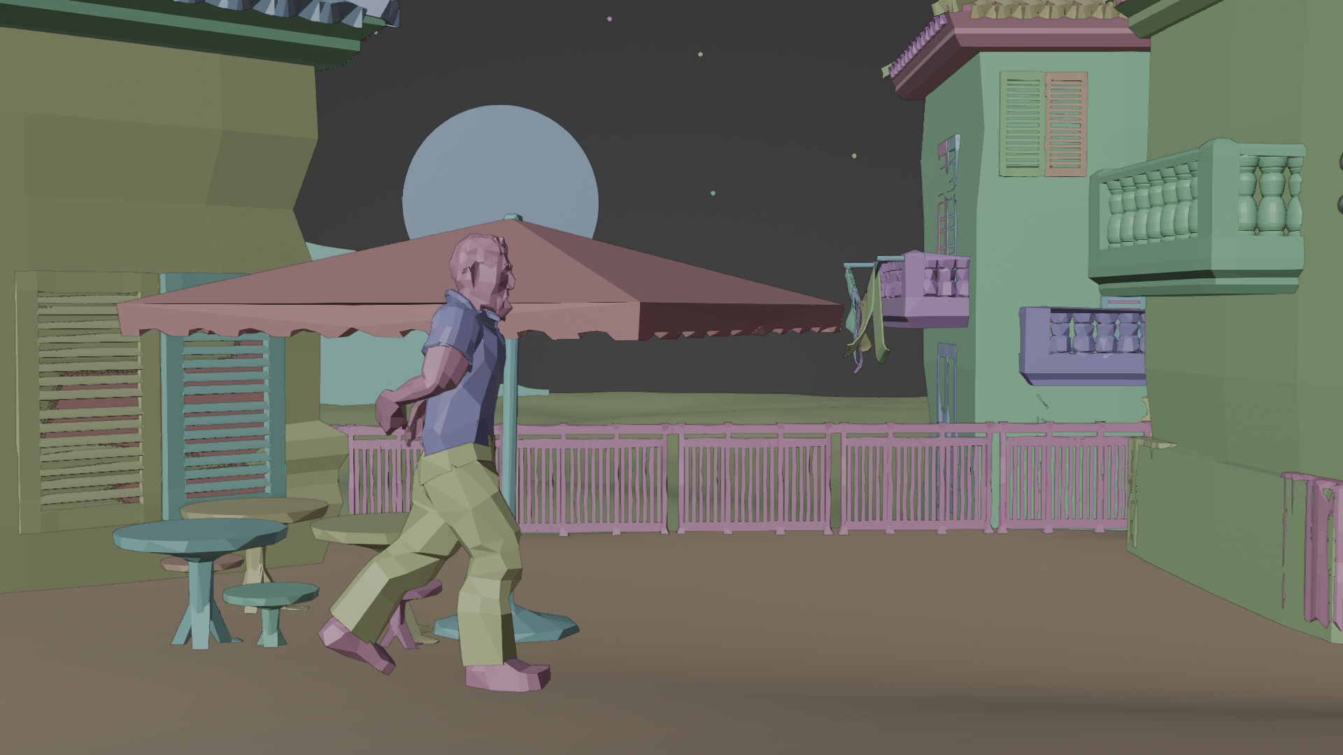 Making the Sindaco trailer was challenging, as I had a week to finish it and it was my first 3D animation. I used as many stage tricks as I could in order to optimise my time, and I made good use of post processing effects to give the low poly assets some stylisation.