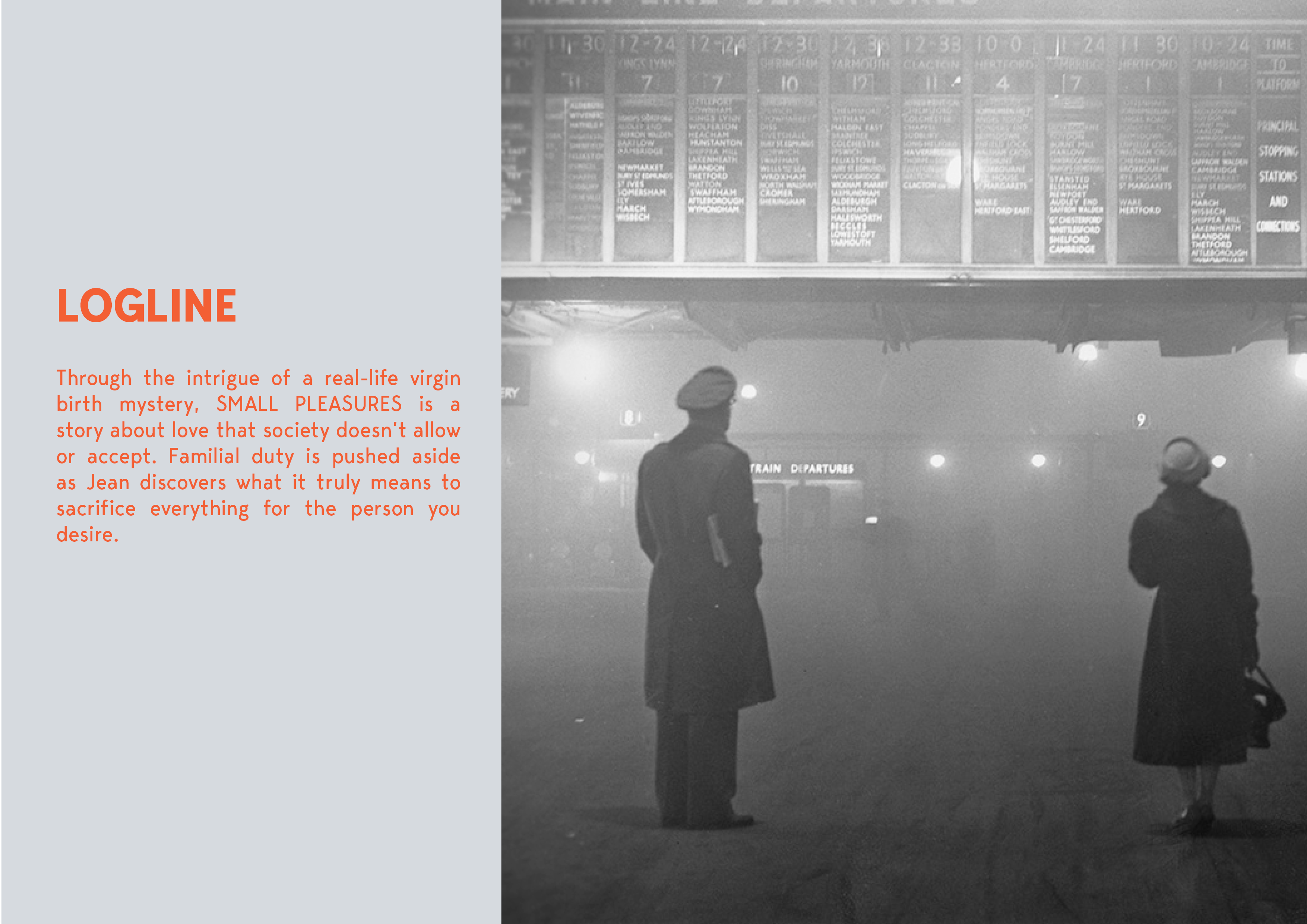 Small Pleasures is a story about forbidden love, set in the English countryside in the 1950s. For this deck, the goal was to transmit a sense of cinematic sheen, allowing potential producers to envision the project on the big screen. Balancing modern images with the contemporary photography of the 1950s and 60s proved to be the biggest challenge with this pitch deck; however, it was important to root the story in its time period, while allowing the modern typography and layout to bring us back to the present.